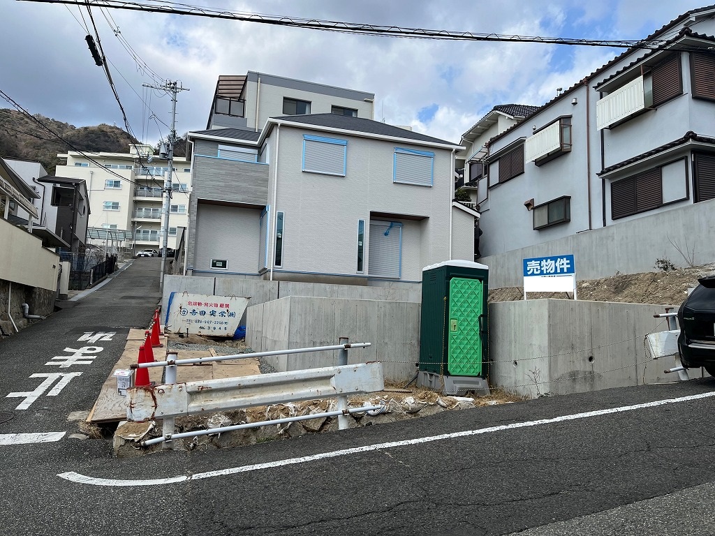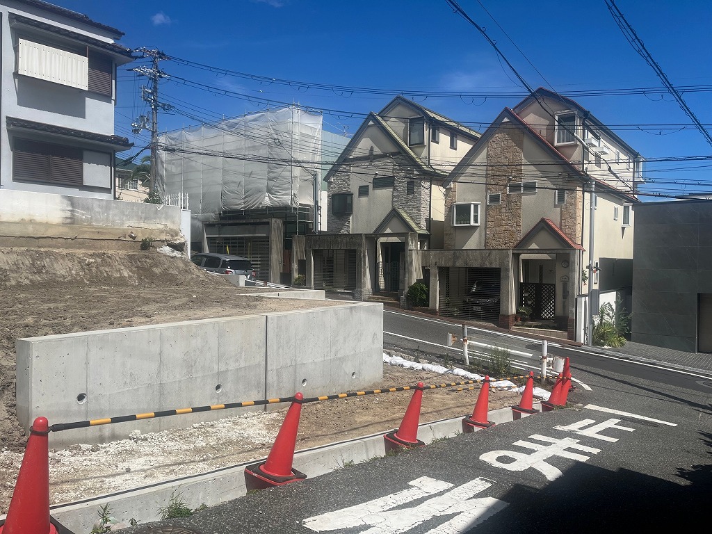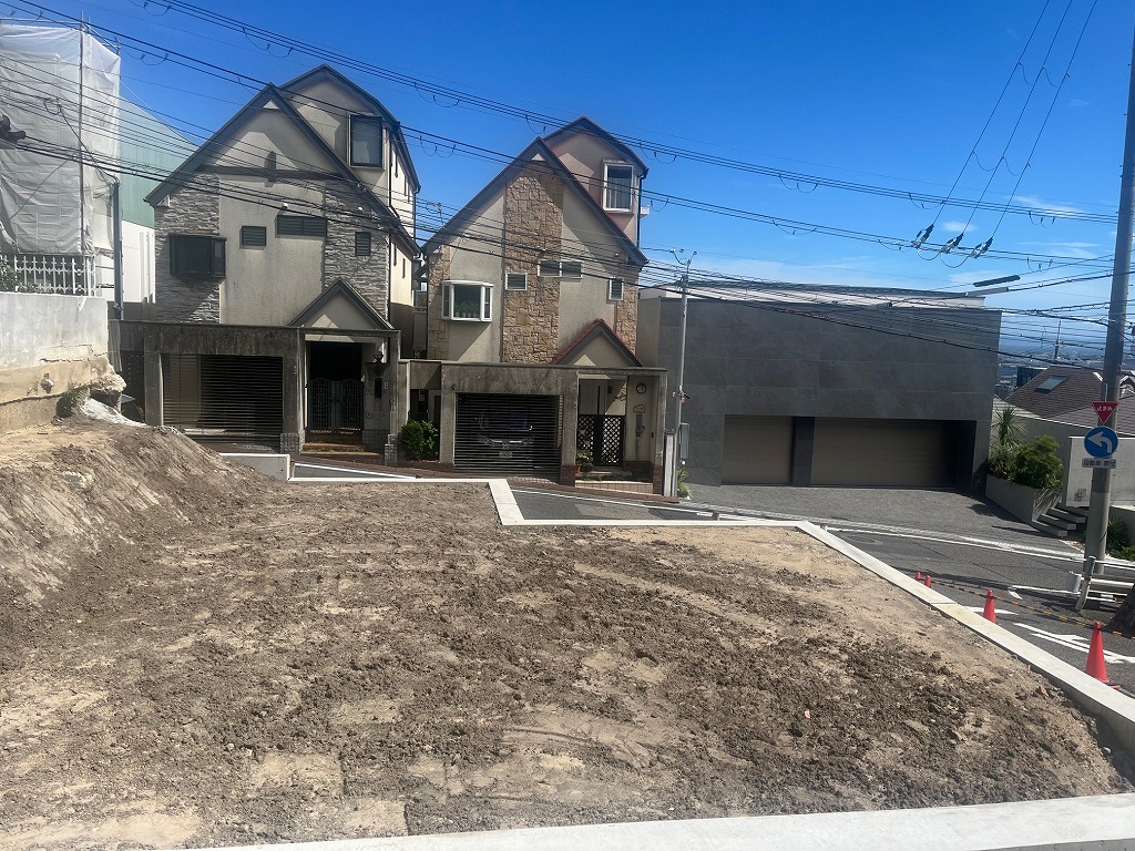 阪急六甲駅から神戸市バス2系統に乗車約11分、観音寺バス停より徒歩3分ほどのアクセスとなります。山の手の住宅街、周辺は一戸建ての住宅の他、小規模なマンションなどが混在するエリアです。本物件は、南側8m幅員のバス通りと、西側4m幅員の私道に面した南西角地です。道路面より1.5mほどの擁壁が造作されております。土地形状はほぼ正方形にて、建築条件は付いておりません。お好きなハウスメーカーや工務店での建築が可能です。比較的間取りの配置がしやすい形状なのがおすすめです。北側隣接は建売住宅が建築されております。若干バスの車両通過音がしますが、それほど交通量は多くないので、気になるほどではございません。神戸高校の東側付近のエリアで、六甲ケーブル下バス停も近いものです。