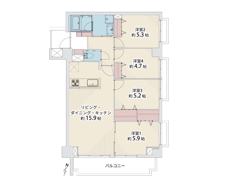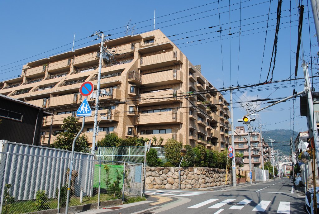 JR摂津本山駅を南へ560m、徒歩7分ほど、阪神青木駅を北へ約600m、徒歩8分ほどのアクセスとなります。福池小学校のすぐ西側の立地、周辺は一戸建て住宅の他、賃貸や分譲のマンションなどが混在するエリアです。昭和58年建築(築後42年経過)の7階建、総戸数59戸の中規模マンション、このたび5階部分、東南角の部屋をリノベーションしました。床・壁・天井の張替は勿論、システムキッチン・浴室・洗面・トイレなどの水回りや給湯器などの設備もすべて新調されております。専有面積79uに、4LDKの間取りを配置、全部のお部屋に窓がございます。バルコニーからは、福池小学校の景観を楽しめます。管理人もおり、共用箇所のメンテナンスも行き届いているのが人気のマンションです。