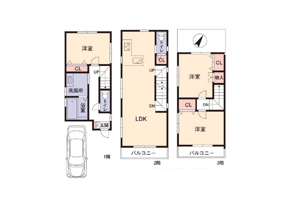 阪急六甲駅を南西へ約360m、徒歩5分ほどのアクセスとなります。六甲小学校の西側付近のエリア、周辺は一戸建て住宅の他、分譲や賃貸のマンションなどが混在する閑静な住宅街となっております。本物件は、南側3m幅員の道路に面した木造3階建中古住宅にて、建築後10年経過しておりますが、このたび内外装全面的にリフォームがなされております。システムキッチン、洗面所・お風呂・トイレなどの水回りの設備もすべて新調されております。延べ床面積84uに、3LDKの間取りを配置、トイレは1・2階の2箇所、バルコニーは2・3階の2箇所に設置されております。キッチンはL型、コンパクトな家事動線がおすすめです。前面道路は狭めですが、車両サイズにより進入は可能です。