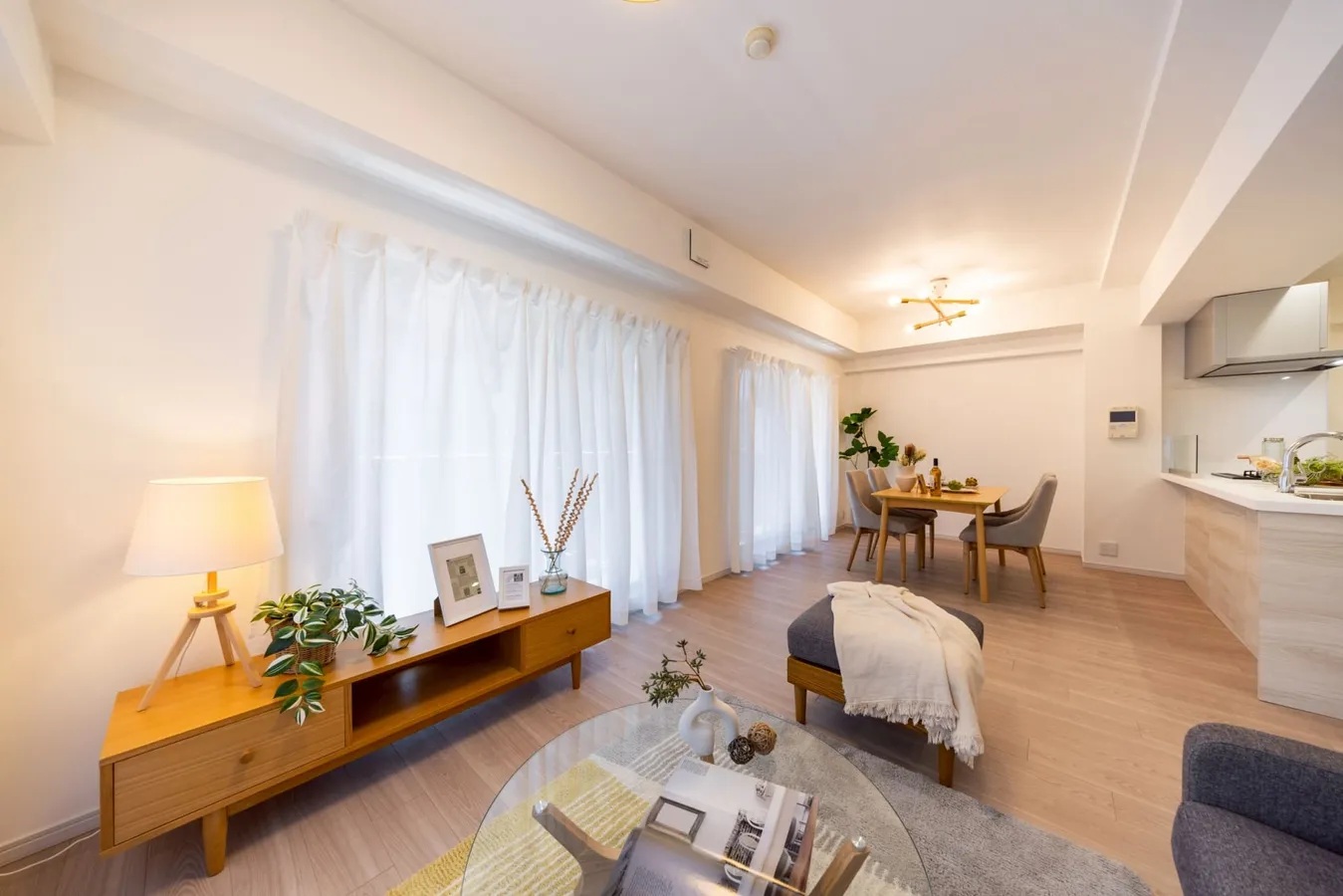 JR摂津本山駅を南東へ約700m、徒歩9分ほどのアクセスとなります。国道2号線の一筋北側のエリア、周辺は一戸建て住宅の他、分譲や賃貸のマンションなどが混在する住宅街となっております。平成9年建築(築後28年経過)の5階建て、総戸数23戸の小規模マンション、このたび2階部分、東南角部屋をリノベーションしております。床・壁・天井の張替は勿論、システムキッチン・浴室・洗面・トイレなどの水回りや給湯器などの設備もすべて新調されております。延べ床面積76uに、3LDKの間取りを配置、バルコニーが、南から東へ半周ぐるりとあり、南側は、奥行きがたっぷりございます。室内設置の小物や家具は、ディスプレイ用にて、撤去されます。