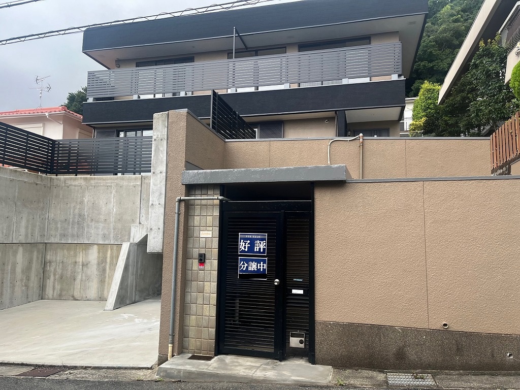 阪急御影駅を北東へ約1.7キロ、徒歩では24分ほど要します。阪急岡本駅からは本件団地内への自治会バスの運行がございます。山の手の住宅街、通称<ヘルマンハイツ>という高級住宅街、7〜80坪に区割りされた南斜面のエリアです。南側6m道路に面した築後50年の鉄骨造の中古住宅を、このたび内外装すべてリノベーションしました。室内では一切の古さを感じることはございません。南側道路から3mほど高い台の敷地で、南側にお庭が広がっております。延べ床面積は184uと、かなりゆったりしたサイズです。まずは玄関の広さが快適で、シューズクロークも十分な収納力がございます。1階に3つの洋室と、洗面・お風呂を配置、2階にLDKが配置されており、南側バルコニーからは素敵な景色を楽しむことができます。各所にある大容量のパントリーや収納庫がおすすめです。前面には2台分の駐車スペースがあり、玄関への階段の勾配も少しゆったり目なのです。